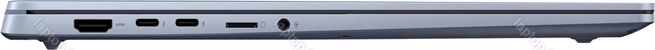 2x Thunderbolt 4 / USB4 с поддержкой DisplayPort 1.4 (40Gb/s, PD-Out, поддержка зарядки устройства PD-In), 2x USB-A 3.0 (5Gb/s), 1x HDMI 2.1, 1x комбинированный аудиоразъём 3,5 мм Line-In/Out, 1x microSD, 1x DC In полый штекер (6mm, поддержка зарядки устройства)