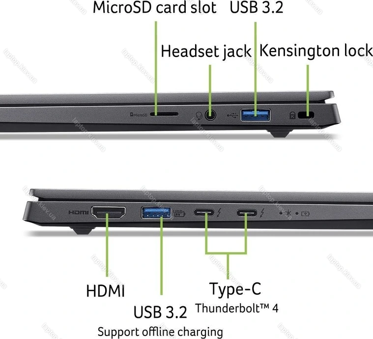 2x Thunderbolt 4 / USB4 с DisplayPort 1.4 (40Gb/s, PD-Out, сетевой разъём питания PD-In), 1x USB-A 3.1 (10Gb/s, с поддержкой зарядки устройств), 1x USB-A 3.1 (10Gb/s), 1x HDMI 2.1, 1x 3.5 мм аудио-разъём линейный вход/выход, 1x microSD