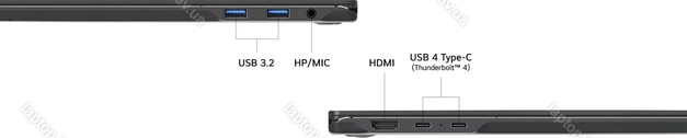 2x USB4 с поддержкой DisplayPort (40Gb/s, поддержка зарядки устройства PD-In), 2x USB-A 3.0 (5Gb/s), 1x HDMI, 1x комбинированный аудиоразъём 3,5 мм Line-Out